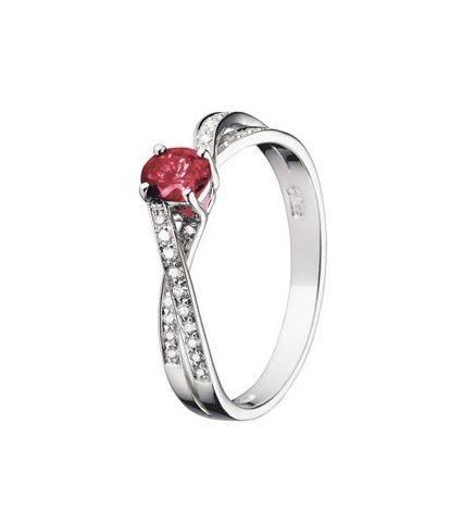 Anello oro bianco 18kt con diamanti e rubino ovale Collezione Bl emma Natura Design elegance Caratura 0.13 Colore Diamante H Caratura colore 0.38