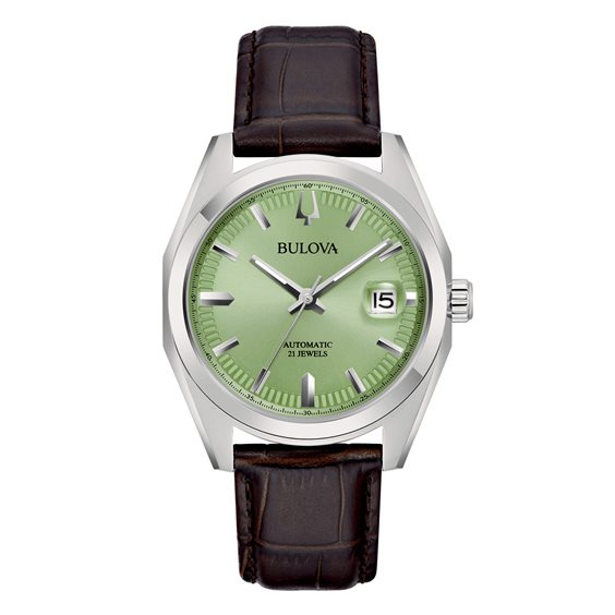 Orologio unisex solo tempo modello Surveyor Automatic. Cassa in acciaio lucido , fondello serrato a vite con vista movimento. Movimento automatico 21 rubini con riserva di carica 40 ore. Vetro zaffiro con lente sulla data. Quadrante verde indici e lancette (luminescenti) lucide. Cinturino in pelle stampa alligatore colore marrone testa di moro , fibbia con ardiglione e logo. Scatola libretto istruzioni e garanzia 5 anni originali.