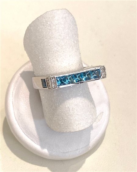 Anello oro bianco 18kt Topazio azzurro ct. 0,25 e brillanti ct. 0,06 Misura 14 CHIMENTO