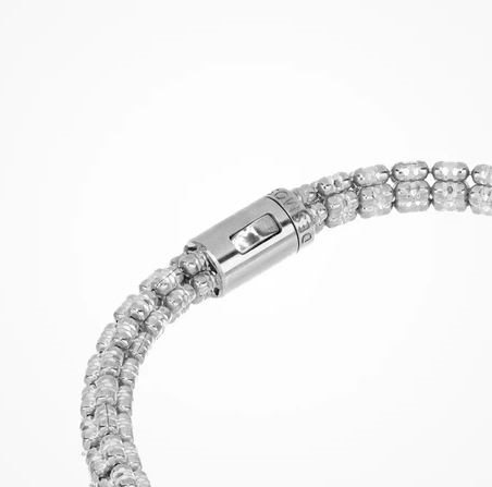 Bracciale rotondo in argento sterling a palline multifila con elementi dall'originale sfaccettatura Infinity, sviluppato internamente con tecnica di diamantatura