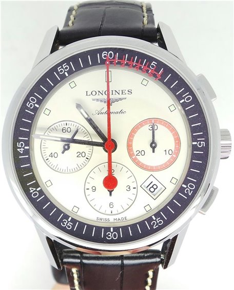 Cassa Forma: Rotonda Materiale: acciaio inossidabile Vetro: vetro zaffiro antigraffio bombato con trattamento antiriflesso multistrato sul lato interno Fondello: fondello trasparente in vetro zaffiro Dimensioni: Ø 41,00 mm Impermeabilità: impermeabile fino a 3 bar Movimento e funzioni Calibro: L688, movimento cronografico meccanico a carica automatica con ruota a colonne, frequenza di 28.800 alternanze orarie e riserva di carica di 54 ore Funzione: ore, minuti, piccoli secondi a ore 9 e data. Meccanismo del cronografo: lancetta centrale dei 60 secondi, contatore dei 30 minuti a ore 3 e contatore delle 12 ore a ore 6. Quadrante e lancette Colore quadrante: argento Giro delle ore: indici dipinti, con Super-LumiNova ® Lancette: lancette argentate lucide, con Super-LumiNova ® Bracciale Materiale: cinturino in alligatore Colore quadrante: nero Fibbia: con fibbia ardiglione