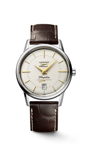 FLAGSHIP HERITAGE, L4.795.4.78.2, orologio Automatico, Ø 38.50 mm, Acciaio inossidabile. Date, Movimento meccanico a carica automatica con frequenza di 28'800 alternanze orarie e riserva di carica di circa 50 ore. Medaglione in oro 18 carati con caravella, Impermeabile fino a 3 bar, Vetro zaffiro antigraffio bombato con trattamento antiriflesso multistrato sul lato interno. Quadrante Argento, Swiss Super-LumiNova®. Bracciale in Cinturino in alligatore, Con fibbia.