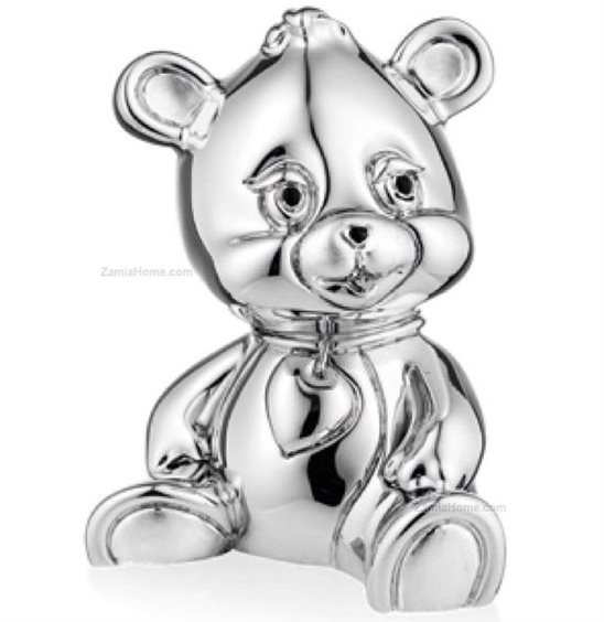 Orso salvadanaio in resina argentata. Prima infanzia resine argentate cm 10 h 12,5 - argento