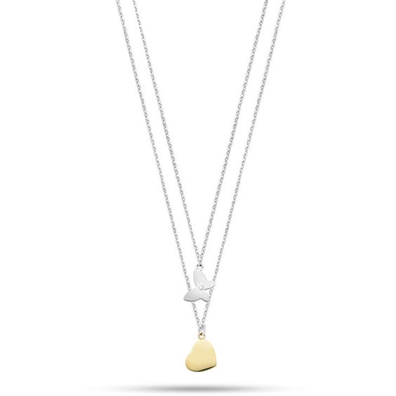 Collana Di Morellato Da Donna In Acciaio, Pvd Oro Giallo E Cristalli Della Collezione Insieme. Collana In Acciaio, Pvd Oro Giallo, Cristalli Bianchi, Lunghezza Cm 45 Regolabile Fino A 40Cm con pendente a forma di cuore in acciaio placcato oro giallo e farfalla in acciaio color argento con zircone al centro.