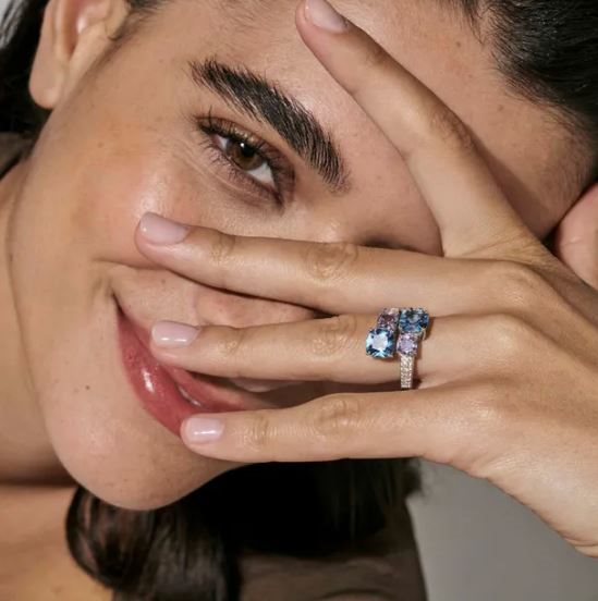 Anello in Argento con Cubic Zirconia di diversi tagli e differenti tonalità di colore: rosa, champagne e bianco oppure blu, celeste, lavanda e bianco. Gioiello disponibile con rivestimento superficiale, realizzato mediante bagno galvanico, in Oro Giallo o in Rodio Bianco. Decorato con molteplici pietre Cubic Zirconia questo anello è perfetto per chi desidera un tocco di sofisticatezza e charme, un vero simbolo di stile e raffinatezzaMateriale Argento rodiato bianc Pietre preziose Cubic Zirconia Misura Pietre 1,1x1,1 mm, 5x5 mm, 7x7 mm, 0,9x0,9 mm Colore Pietra Celeste, Bianco, Lavanda