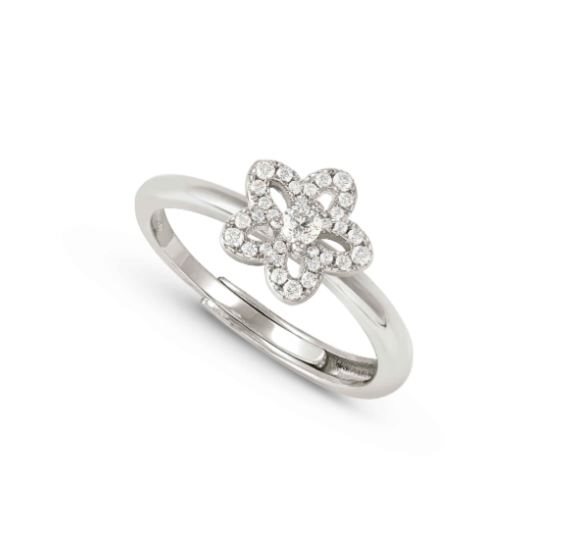 Anello SweetMadame in Argento 925. Impreziosito da un delicato fiore e un luminoso pavé di zirconi bianchi è rivestito in rodio bianco per un'eleganza senza pari. Ogni zircone bianco è selezionato con cura per garantire una brillantezza che cattura la luce in ogni movimento, rendendo questo anello un simbolo di femminilità raffinata e stile incantevole. Lasciati sedurre dalle sue linee suntuose e dal design che celebra la bellezza di chi lo indossa, trasformando ogni gesto in un momento di pura magia. Materiale Argento rodiato bianco Misura Centrale 1 cm x 0.9 cm Pietre preziose Cubic Zirconia Misura Pietre 1x1 mm, 1,2x1,2 mm, 2,5x2,5 mm Colore Pietra Bianco Misura unica: 11-17 . Rivestimento superficiale realizzato mediante bagno galvanico.