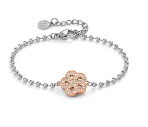 BRACCIALE DONNA NOMINATION, acciaio e fiore rose' centrale con zirconi