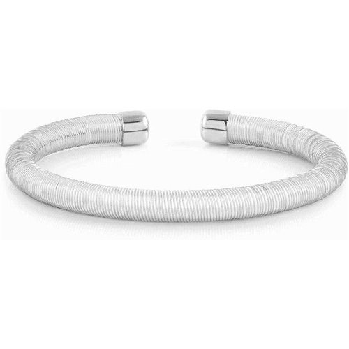 Bracciale donna , argento 925% , diametro cm 5.5 , anima in acciaio flessibile , caucciù bianco. Immagine indicativa , la confezione può variare di forma e colore.