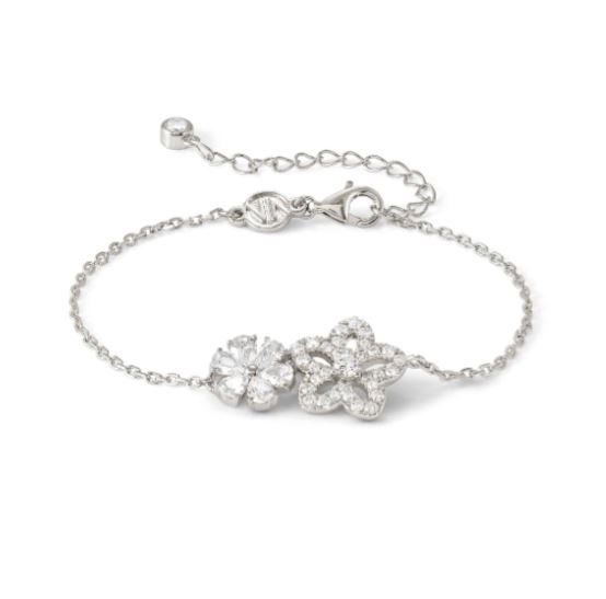 Bracciale SweetMadame in Argento 925 con rivestimento in Rodio Bianco, un'opera d'arte orafa con centrale formato da 2 fiori minuziosamente decorati da pavé di Cubic zirconia bianchi oppure è disponibile anche la varinate con rivestimento in Oro Rosa 916. Lucentezza, femminilità ed eleganza: un accessorio versatile, perfetto per ogni occasione, confezionato per stupire come regalo memorabile. Collezione SweetMadame Materiale principale Argento Chiusura con Cubic Zirconia bianco. Rivestimento superficiale realizzato mediante bagno galvanico.