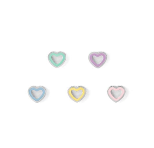 Set di 5 orecchini Cuore in Acciaio, decorati con smalto Colorato. Gioca con i colori per creare ogni giorno un look diverso oppure indossa questi orecchini contemporaneamente e definisci il tuo stile unico.