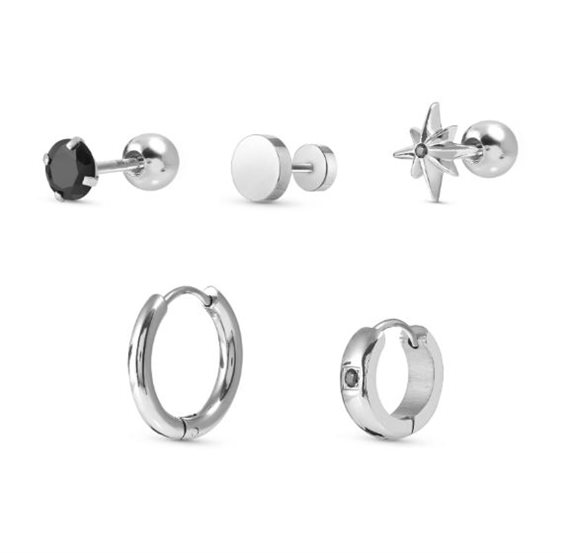Set di 5 orecchini Atlante Stones Edition in Acciaio anallergico 316/304 di diverse forme e misure con Cubic Zirconia neri. Per chi ama cambiare accessori frequentemente questo è il kit giusto: un mix di orecchini che dà la possibilità di cambiare il proprio look per ogni occasione. Tipologia Orecchini Materiale Acciaio 316/304 anallergico Misura Orecchini 0.5 cm x 0.5 cm ; 0.7 cm x 0.7 cm ; 0.8 cm x 0.8 cm ; 1.7 cm x 1.7 cm Pietre preziose Cubic Zirconia Misura Pietre 1,5x1,5 mm, 1,75x1,75 mm, 5x5 mm Colore Pietra Nero Made in Italy