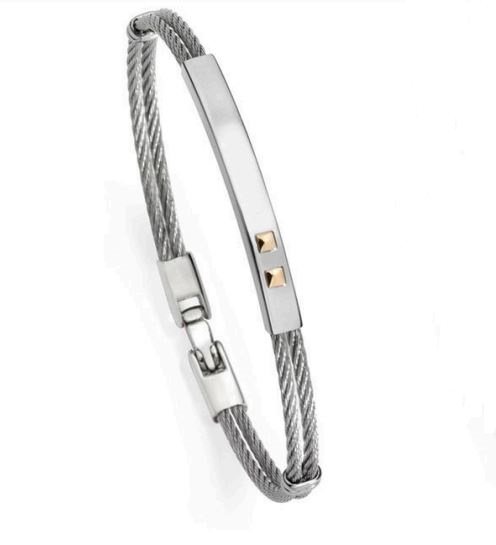 Marchio : Salvatore Bersani Genere : Uomo Tipologia Gioiello : Bracciale Tipologia Bracciale : Bracciale Rigido Bracciale Con Piastrina (Personalizzabile) Materiale : Acciaio Giallo 18kt Colore : Silver Gold Diametro : 7cm Chiusura : Moschettone Confezione : Astuccio E Shopper Originale Garanzia Di Qualità