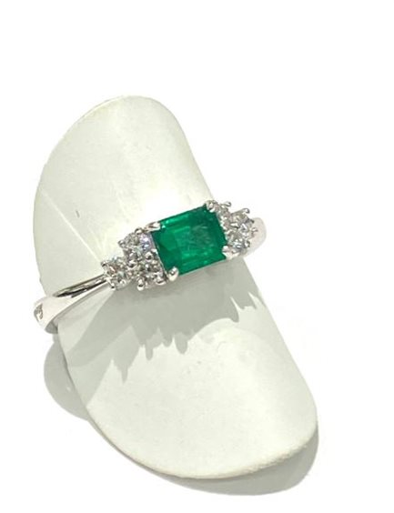Descrizione: Anello brill. e smeraldo Colore Oro: Oro bianco Tipo Pietra: Diamante/smeraldo Caratura diam: 0.45 Colore Diamante: H Caratura centrale: 0.59