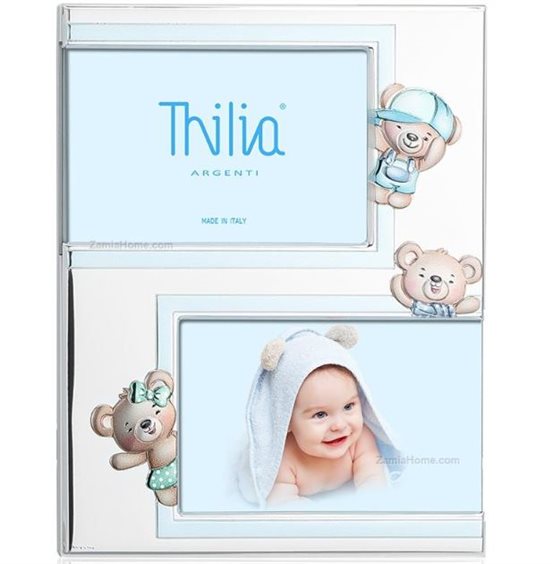 Cornice in argento laminato "piccoli amici", retro legno. Bimbo cornici prima infanzia cm 10x15 (2) - celeste Marca: Thilia argenti .