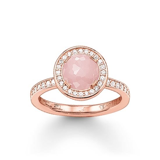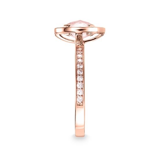 Anello Thomas Sabo Solitario “Light of Moon” donna TR1971-417-9. Anello realizzato in Argento sterling 925 placcato Oro Rosa 18 carati con Pavé di Zirconi bianchi e Quarzo rosa