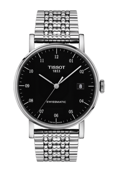 Orologio da uomo solo tempo, movimento meccanico a ricarica automatica, cassa e cinturino in acciaio, quadrante nero, indici arabi, vetro zaffiro, impermeabile 3 bar (30 metri)